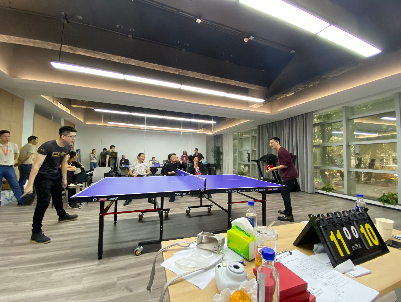 比赛前期在文化墙上以乒乓球赛为主题,拼搭积木与板报绘画,宣传倡导同事们积极参加比赛。友谊第一,比赛第二,活动有助于拉近同事之间的距离。